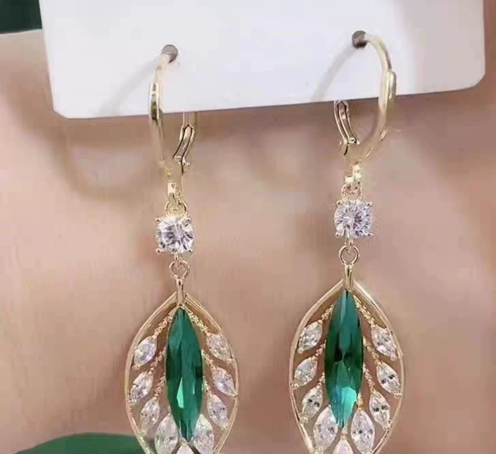 2025新款潮闪耀锆石绿色叶子日常百搭耳扣轻奢高级时尚气质耳环女