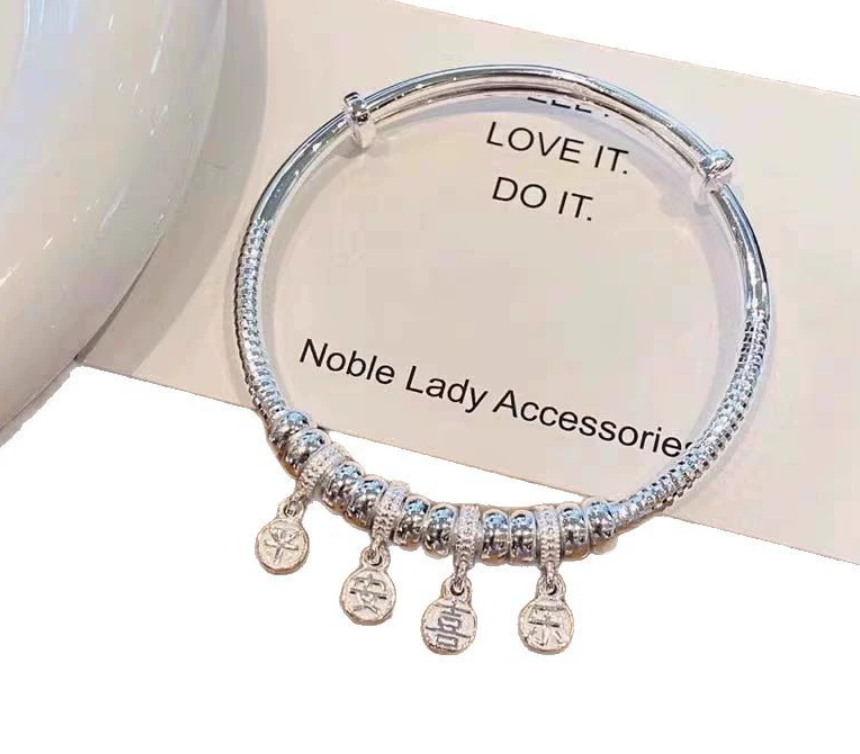 平安喜乐手镯女新国风中式镯子推拉式时尚年轻款小众设计手环礼物