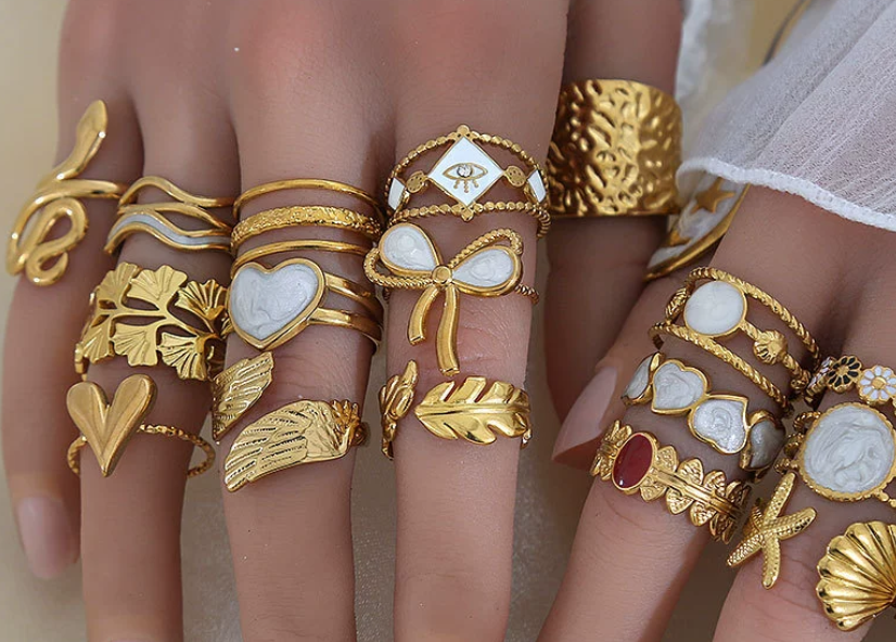 不锈钢树叶戒指女士个性嘻哈18K镀金花朵钛钢戒